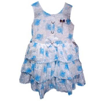 Stylish and comfortable cotton frock for girls, featuring beautiful blue floral print and layered design. Ideal for summer wear. Available in size 20 to 30.